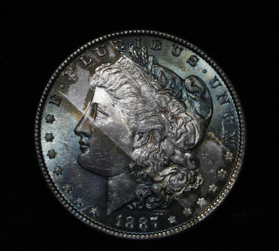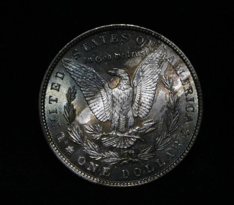 Wild coin with Great banded toning. The deeply toned areas are mostly purples and violets. The white area on the reverse clearly shows the devices being nicely frosted. the luster is blazing and It is 100% all Original. JUST A FANTASTIC EXAMPLE!!! Also a Great Strike. All original fully gradable example. PCGS eats up this sort of thing and usually adds a full point. Estimated Value $150