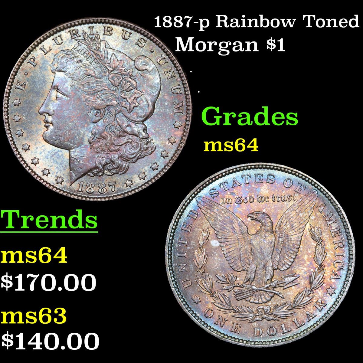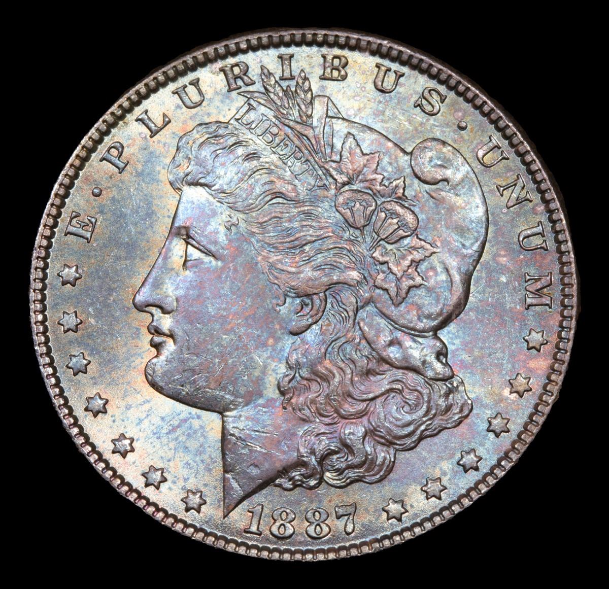 1887-p Rainbow Toned . . Morgan Dollar $1 Grades Choice Unc.