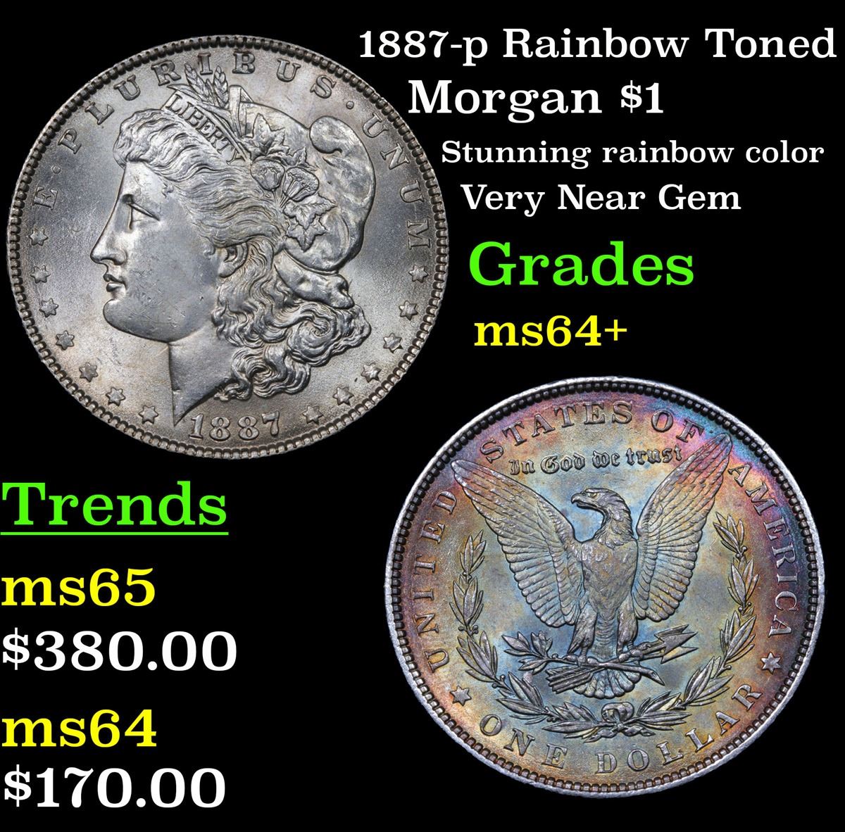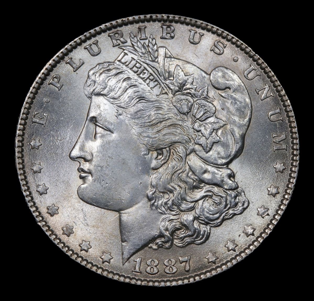 1887-p Rainbow Toned Morgan Dollar $1 Grades Choice+ Unc.