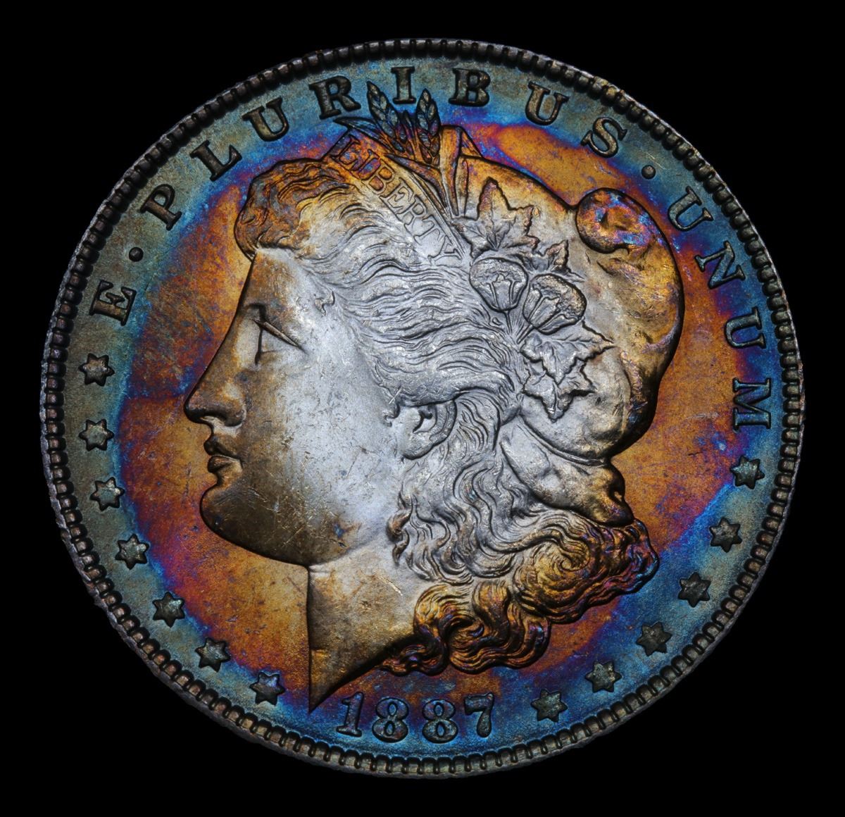 1887-p Rainbow Toned Morgan Dollar $1 Grades Choice Unc. A Corey's Pick, Bid to Win Coin