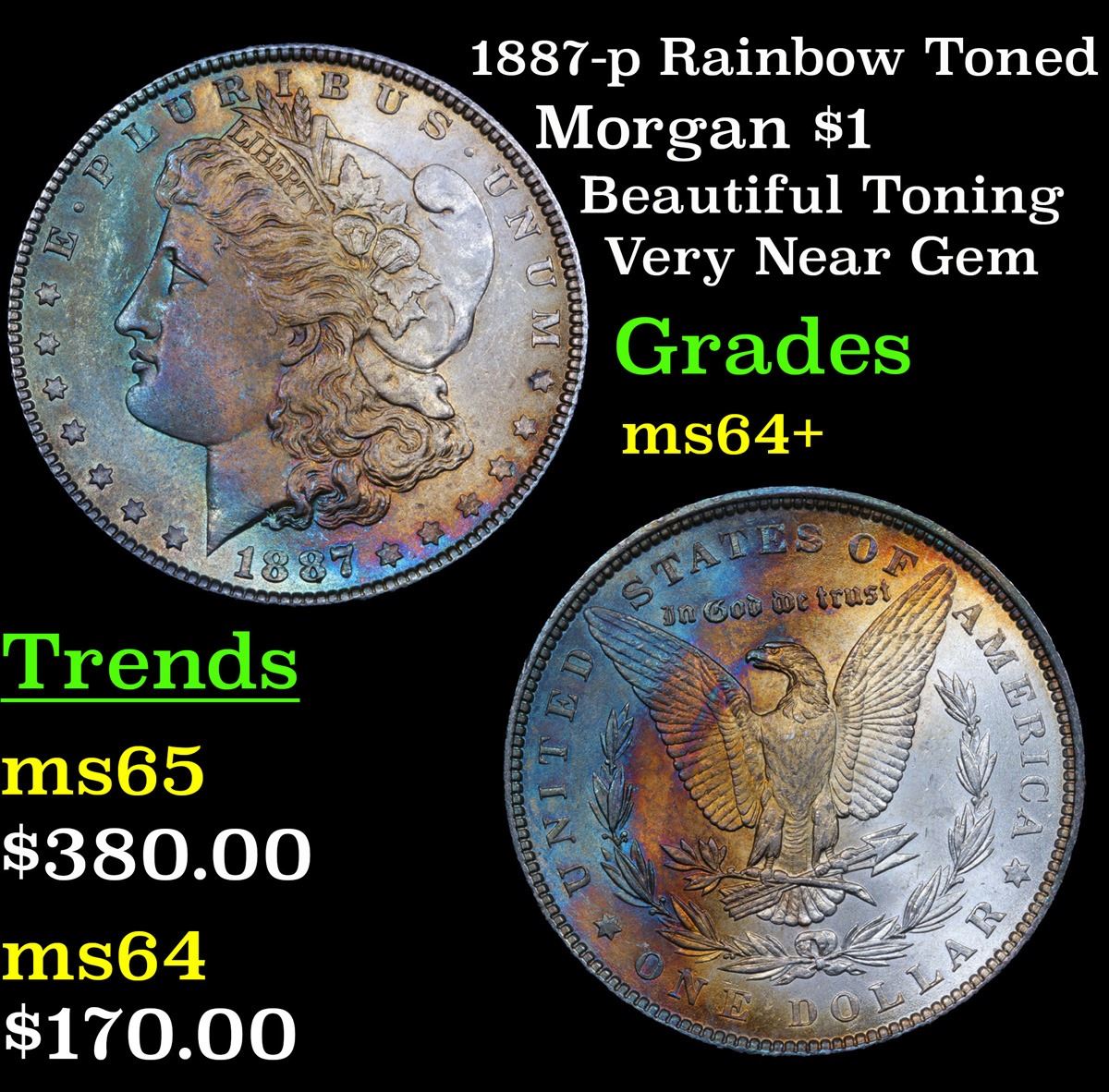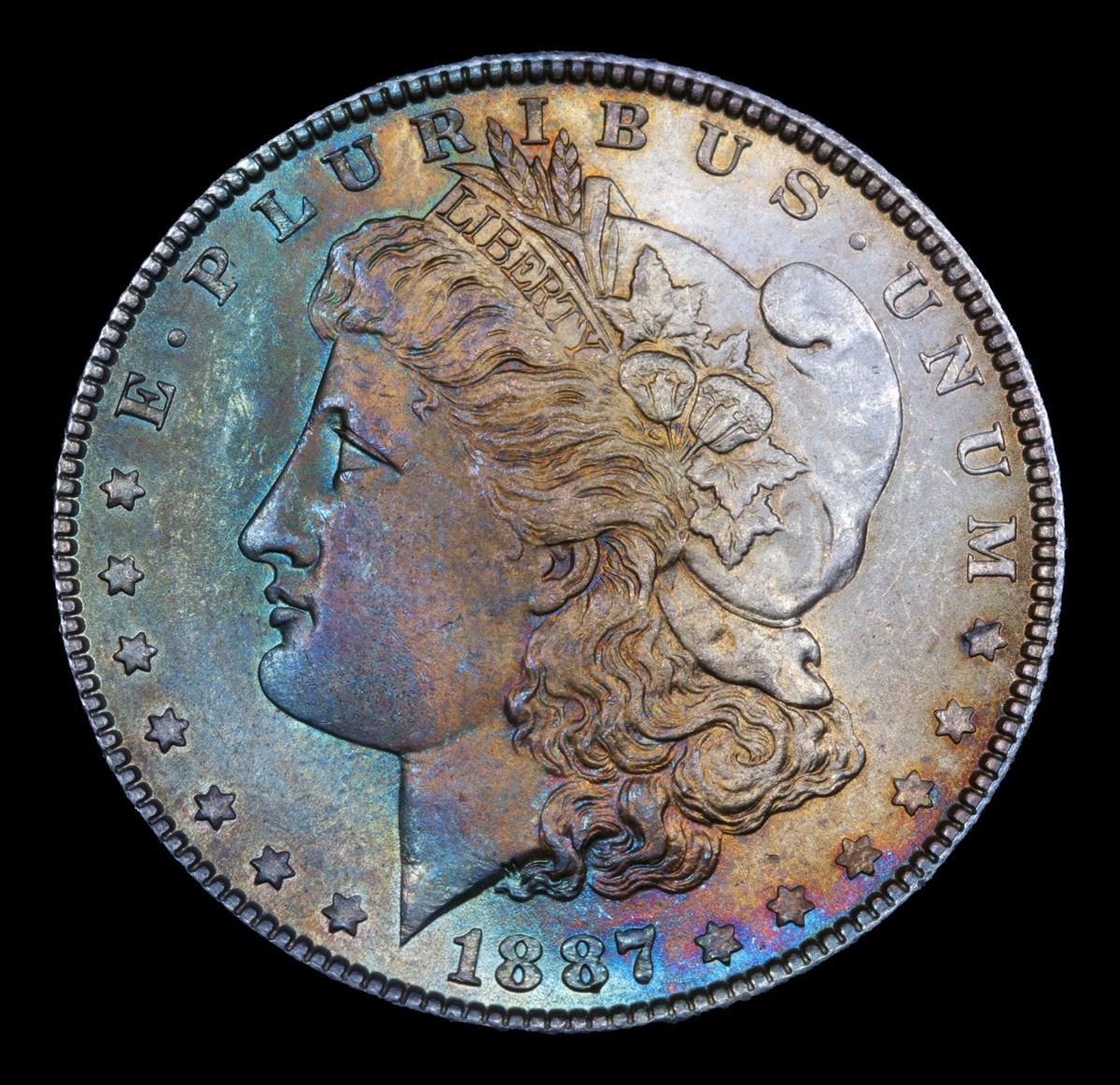 1887-p Rainbow Toned Morgan Dollar $1 Grades Choice+ Unc. A Corey's Pick