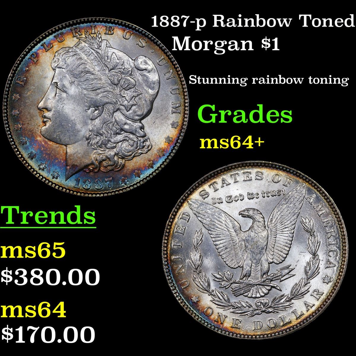 1887-p Rainbow Toned Morgan Dollar $1 Grades Choice+ Unc.