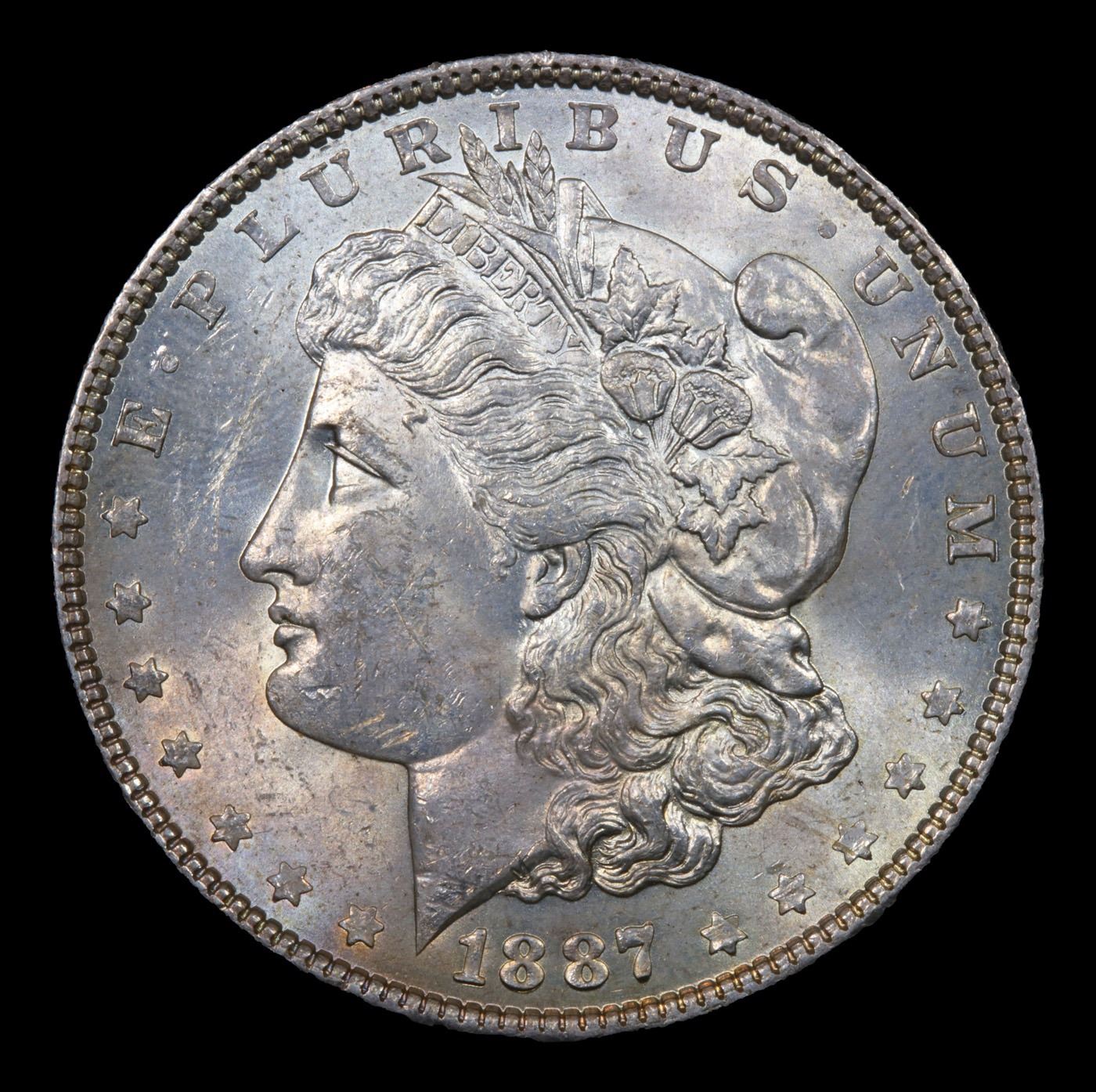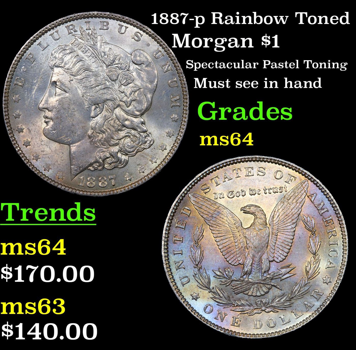 1887-p Rainbow Toned Morgan Dollar $1 Grades Choice Unc.