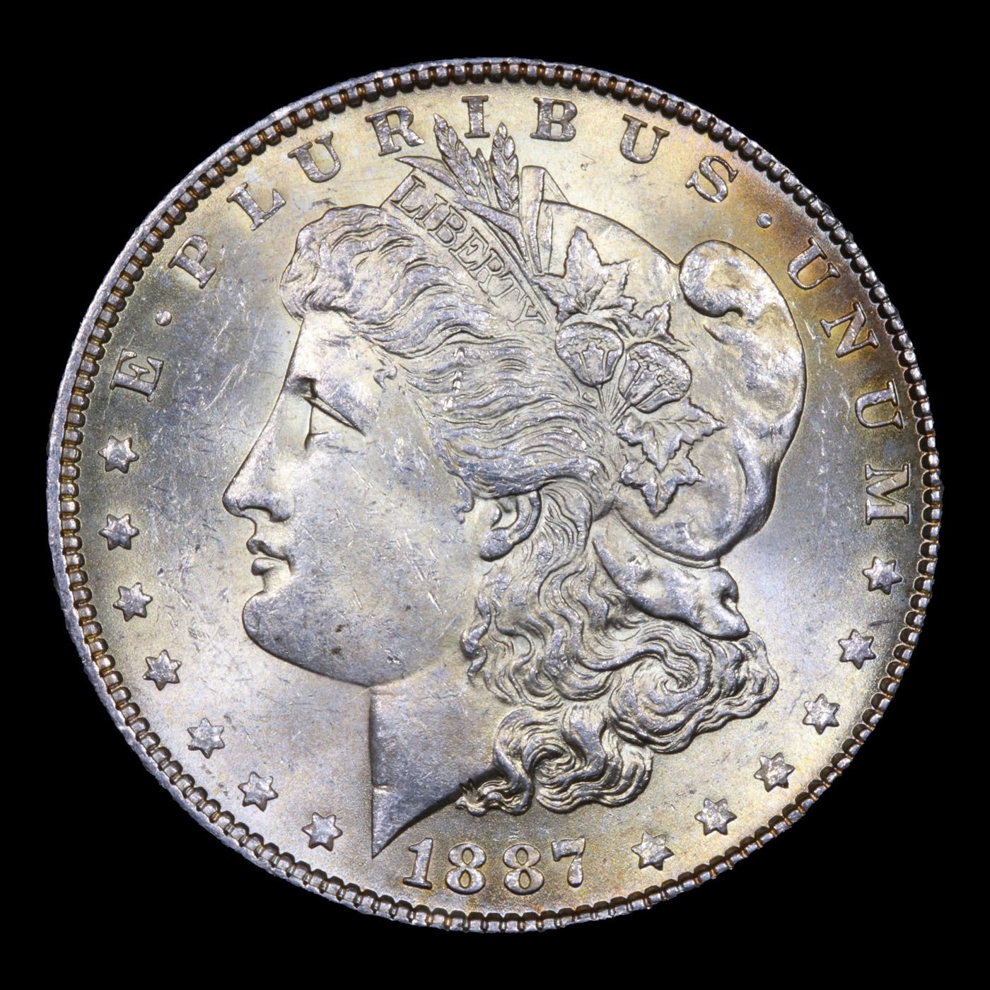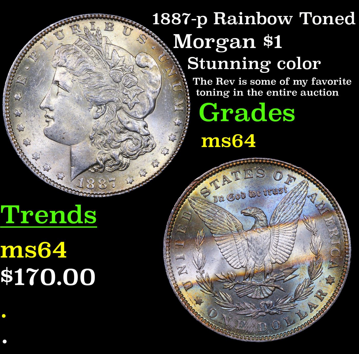 1887-p Rainbow Toned Morgan Dollar $1 Grades Choice Unc.
