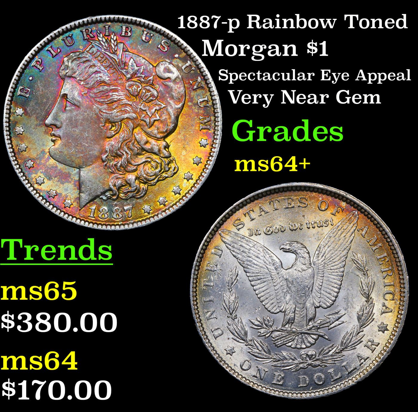 1887-p Rainbow Toned Morgan Dollar $1 Grades Choice+ Unc.