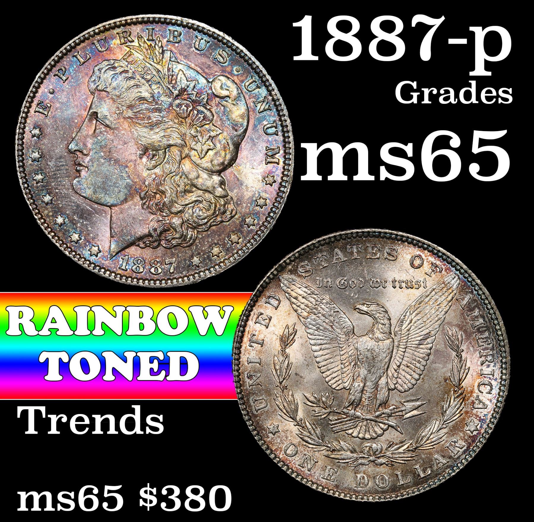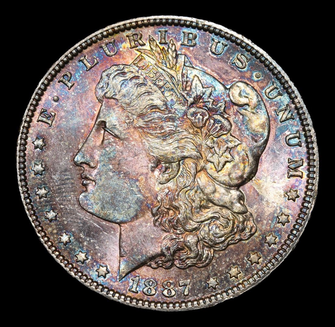 1887-p Rainbow Toned Morgan Dollar $1 Grades GEM Unc.