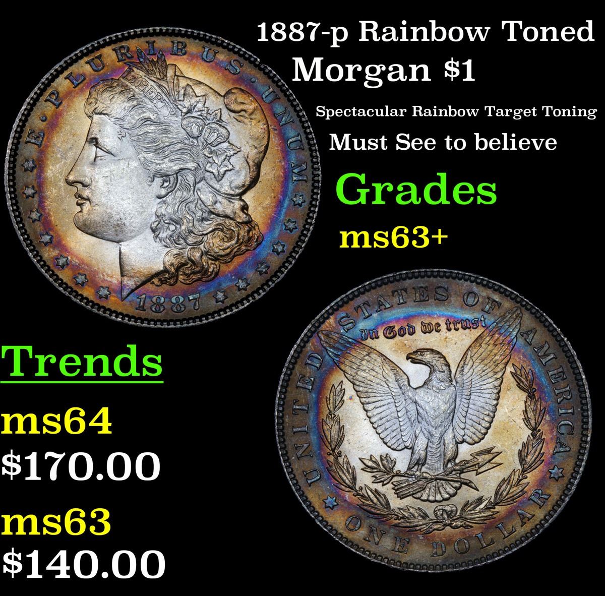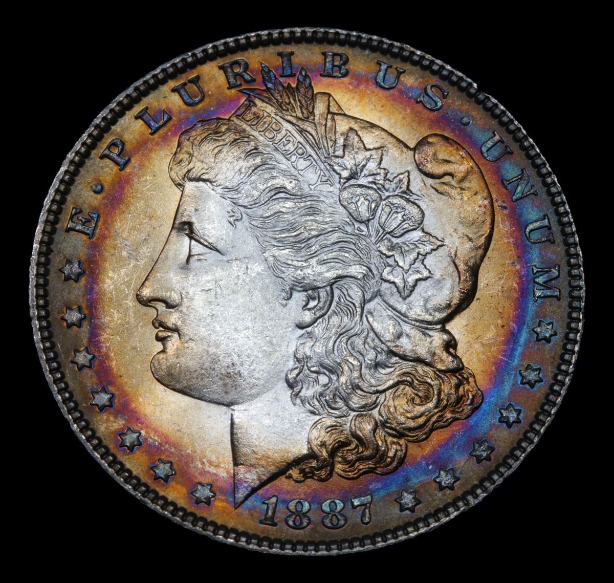 1887-p Rainbow Toned Morgan Dollar $1 Grades Select+ Unc. A Corey's Pick