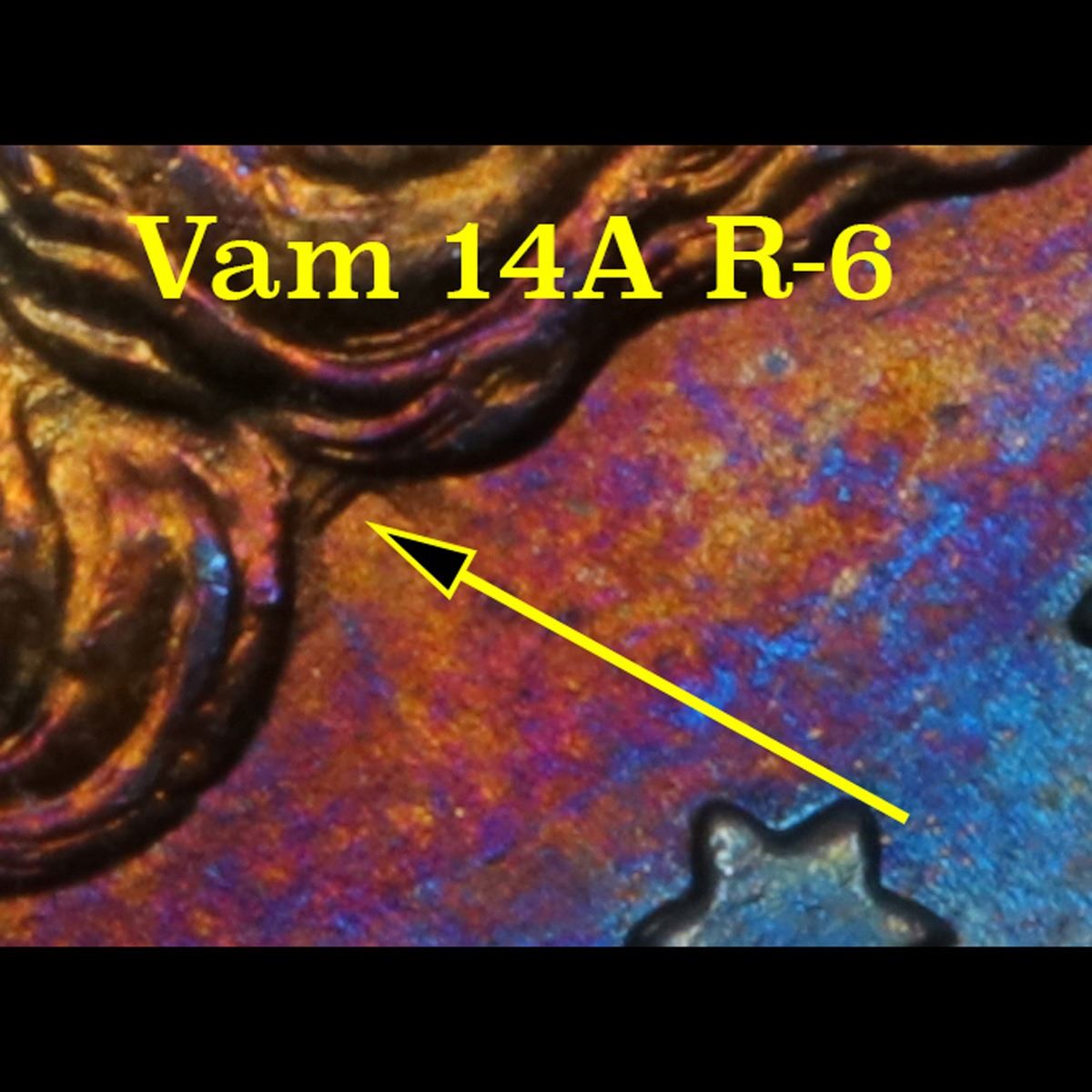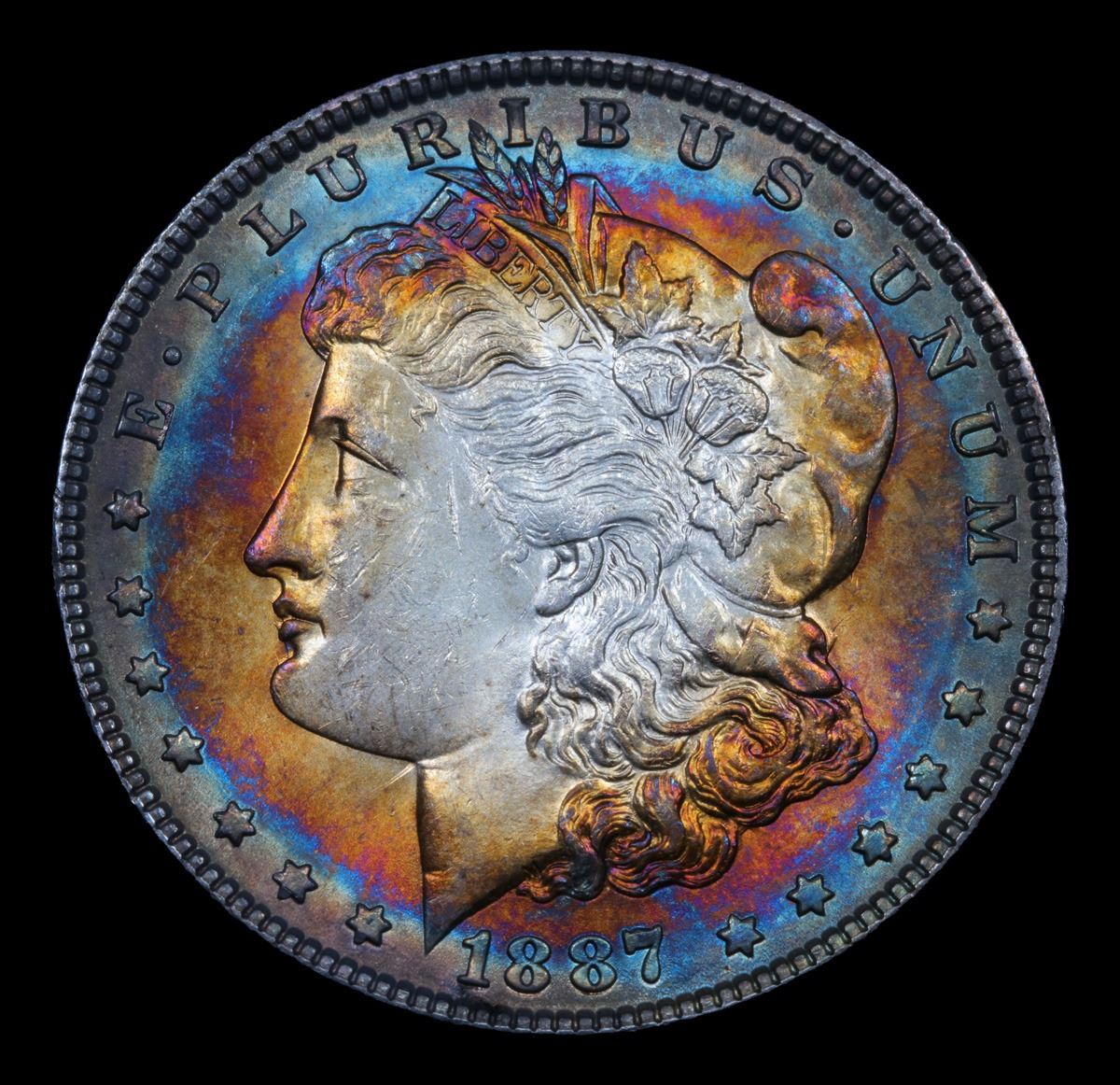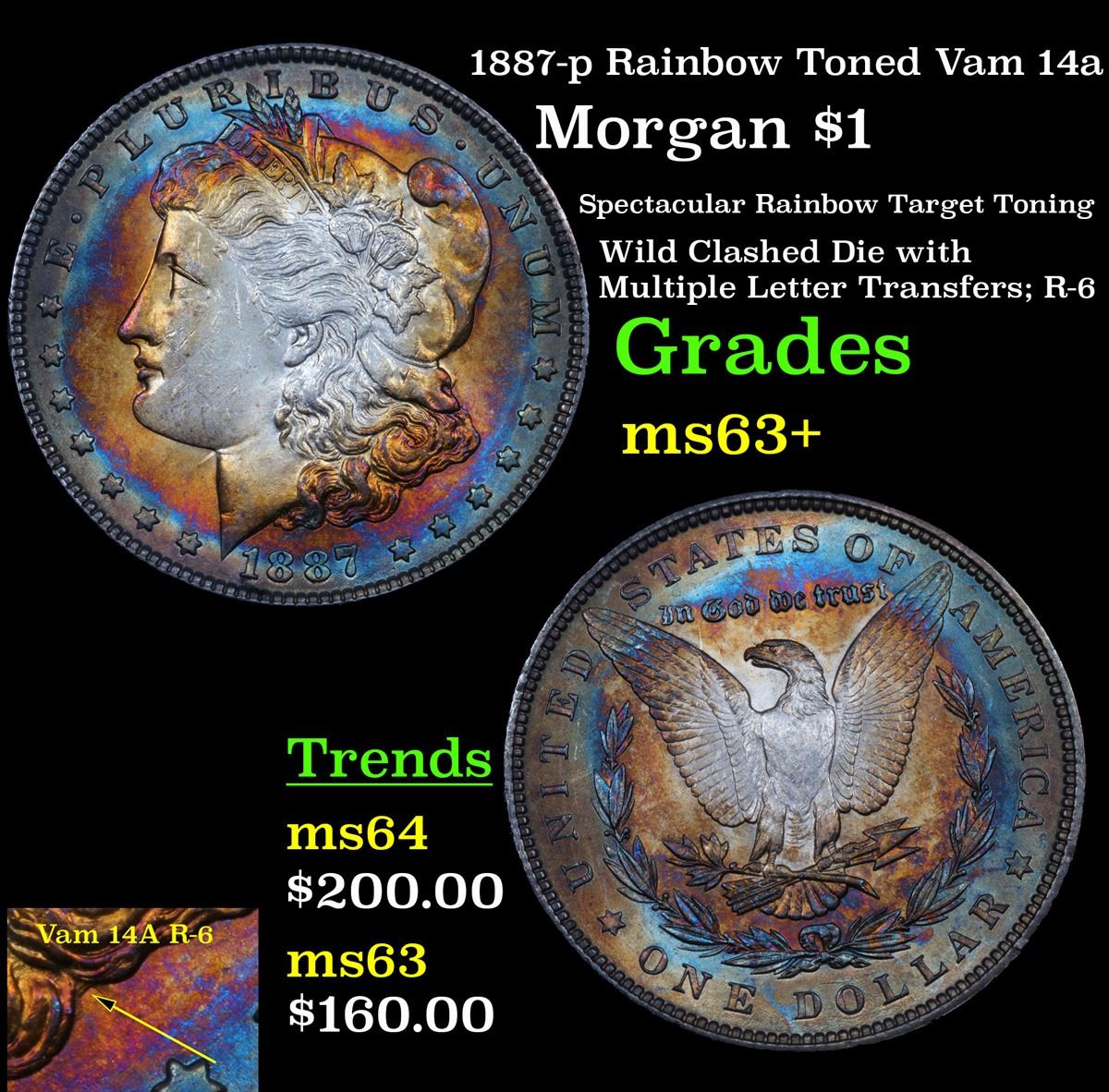 1887-p Rainbow Toned Vam 14a Morgan Dollar $1 Grades Select+ Unc.