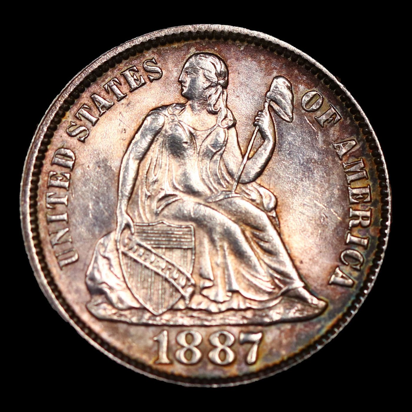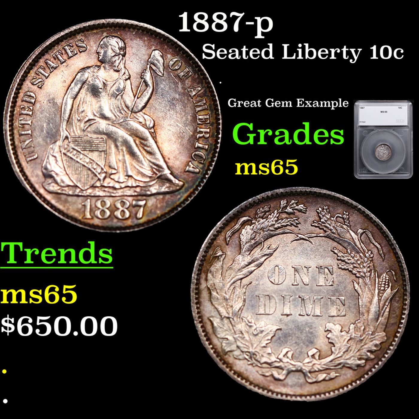 1887-p Seated Liberty Dime 10c Grades GEM Unc By SEGS.