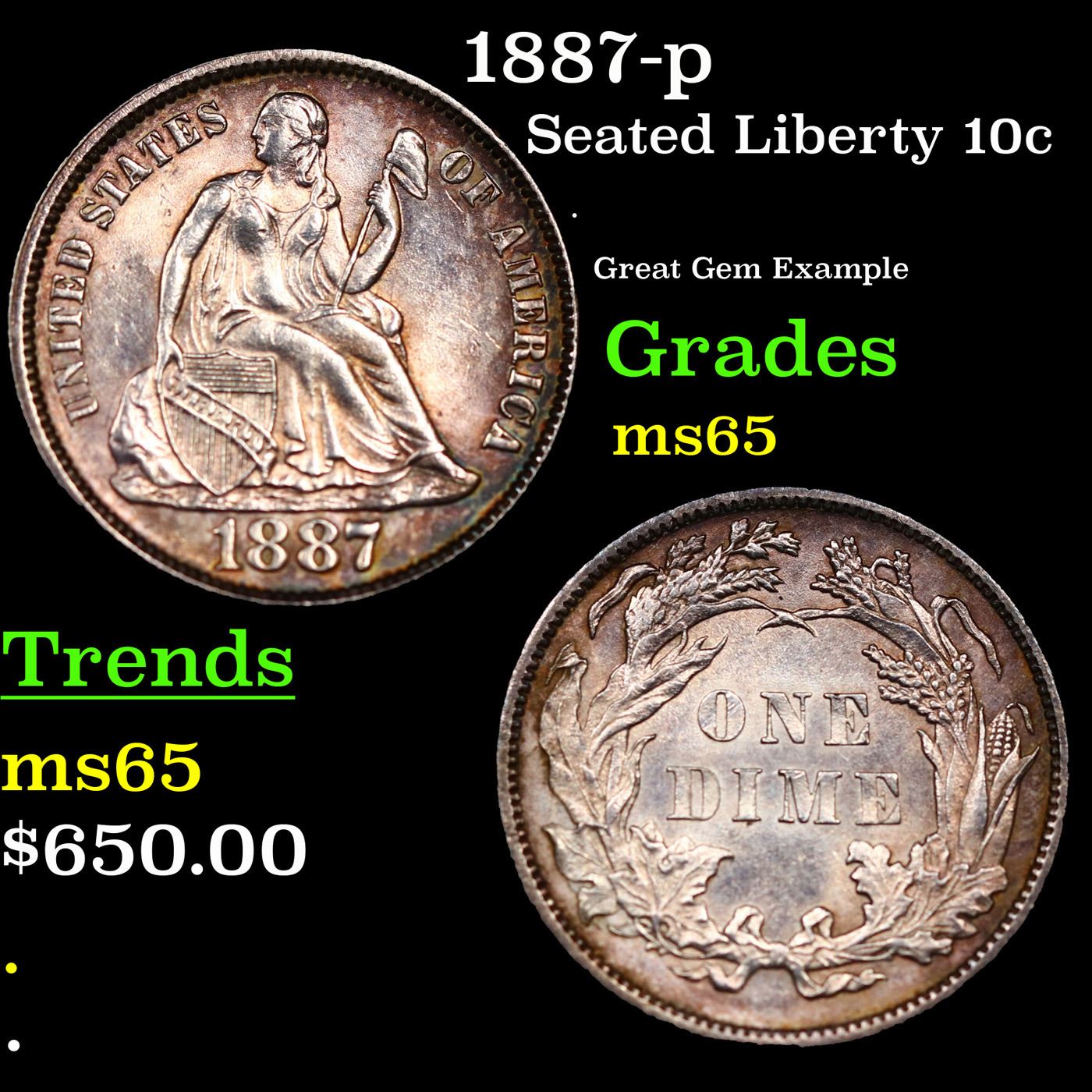 1887-p Seated Liberty Dime 10c Grades GEM Unc.