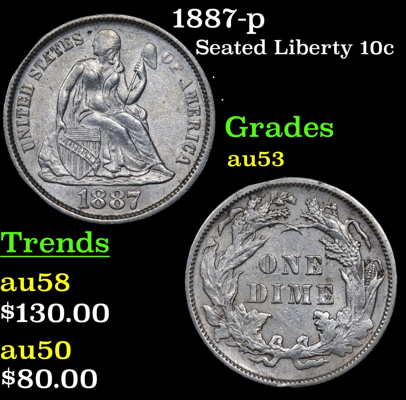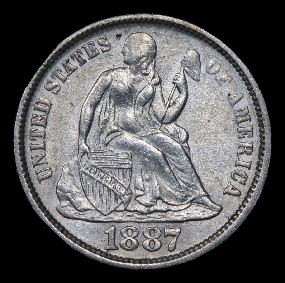 1887-p . . Seated Liberty Dime 10c Grades Select AU.