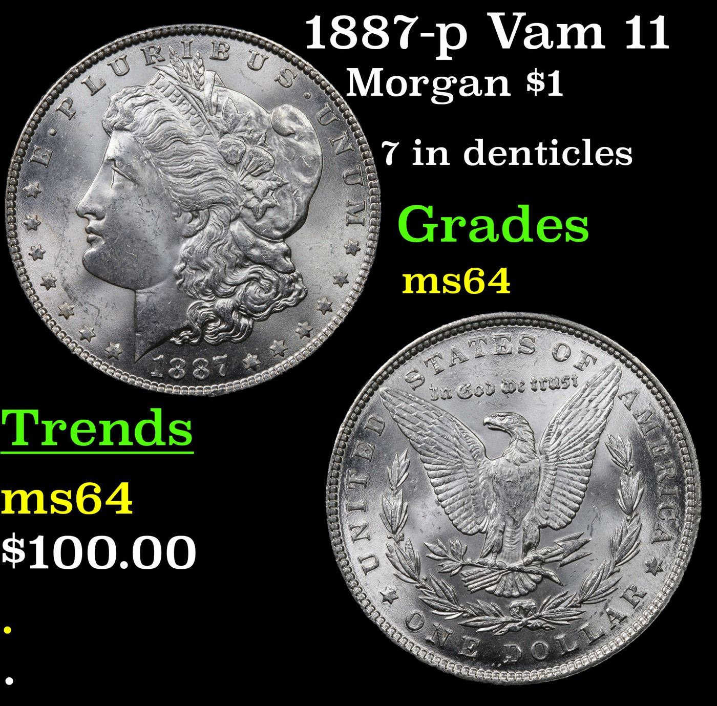 1887-p Vam 11 Morgan Dollar $1 Grades Choice Unc.