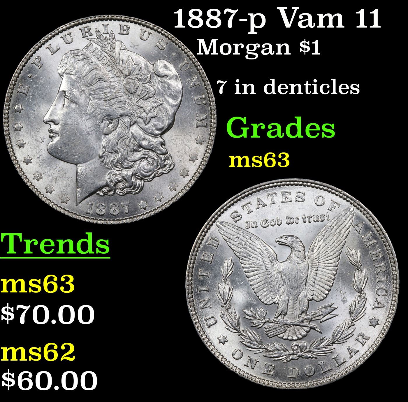 1887-p Vam 11 Morgan Dollar $1 Grades Select Unc.