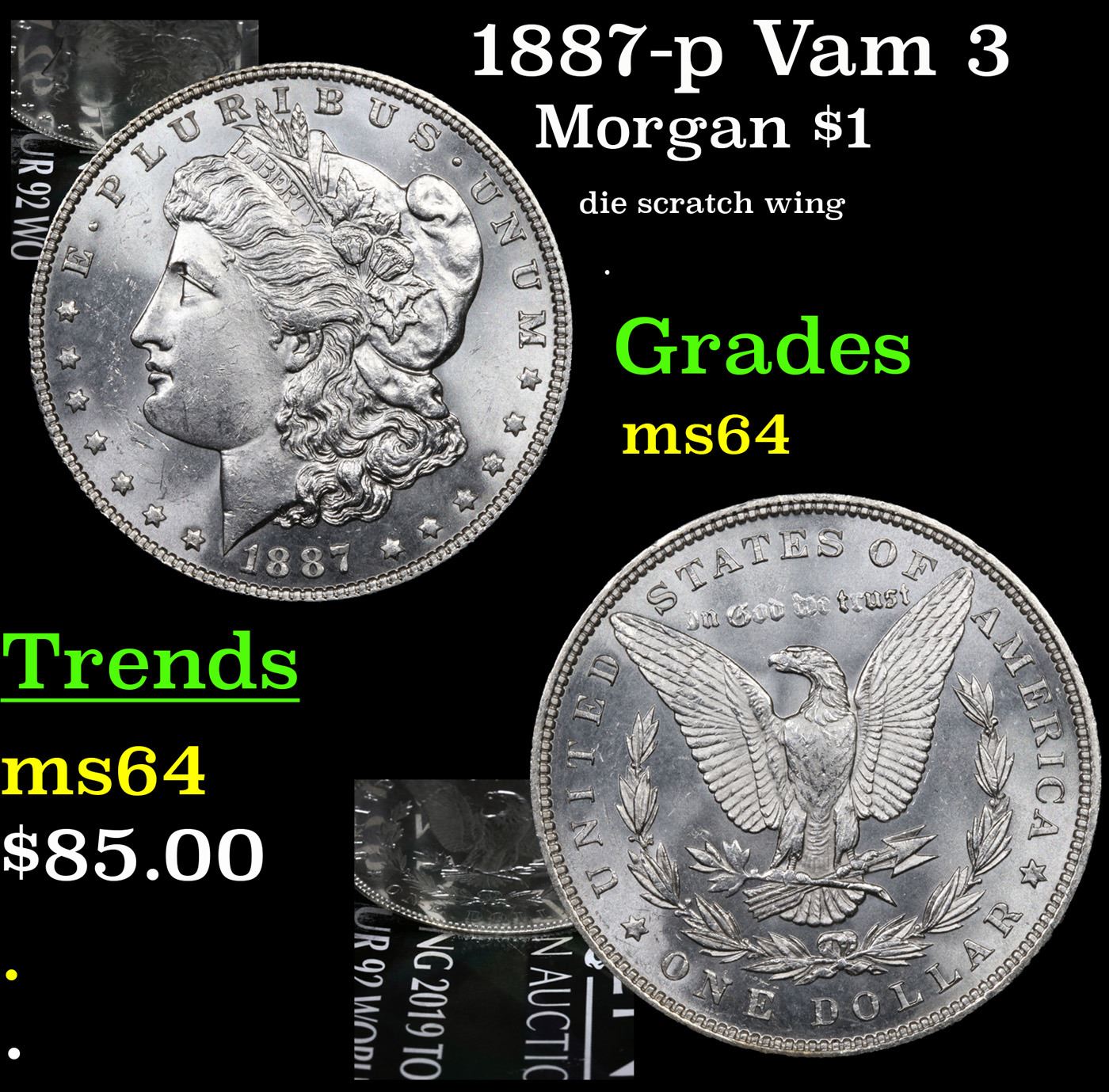1887-p Vam 3 Morgan Dollar $1 Grades Choice Unc.