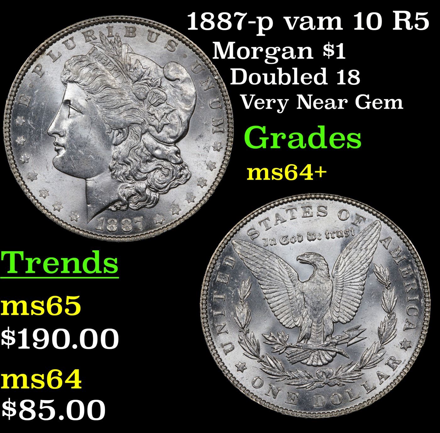 1887-p vam 10 R5 Morgan Dollar $1 Grades Choice+ Unc.