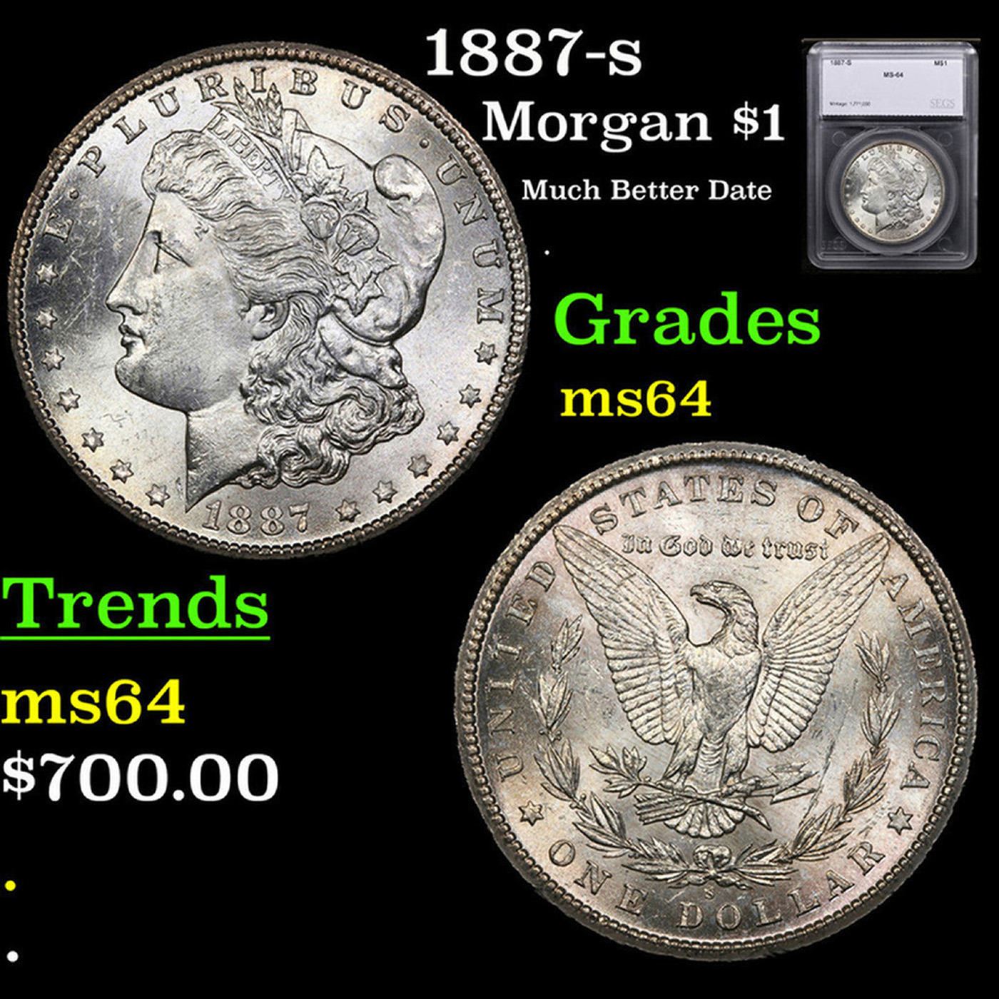 1887-s Morgan Dollar $1 Graded ms64 By SEGS. A Corey's Pick, Bid to Win, Don't let it get Away Coin