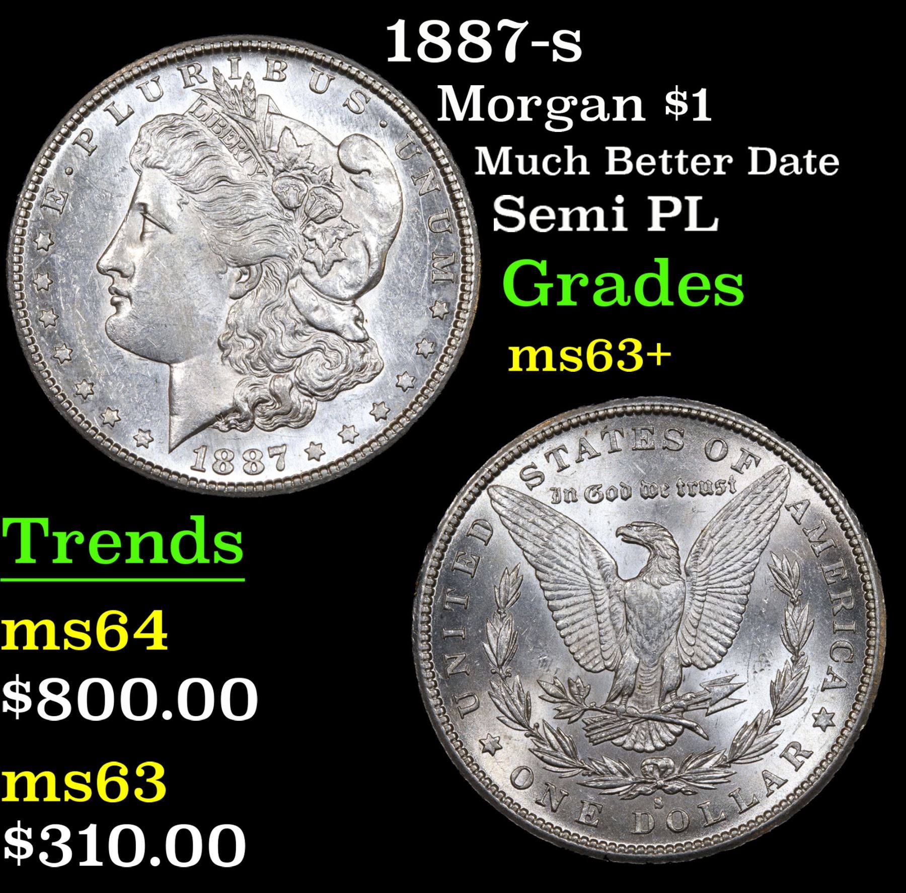 1887-s Much Better Date Semi PL Morgan Dollar $1 Grades Select+ Unc. A Corey's Pick