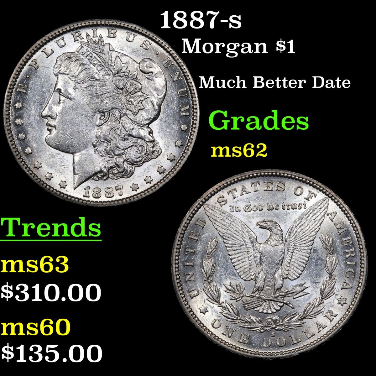 1887-s Much Better Date . Morgan Dollar $1 Grades Select Unc.