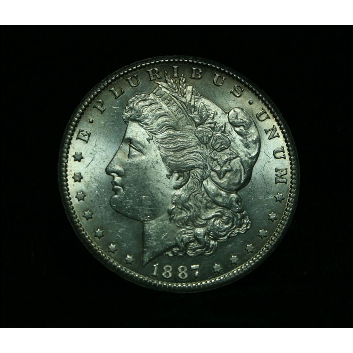 Very attractive and lustrous example. This Date is scarce in this grade. A very nice Choice Uncirculated example of the 1887-s. All original nice rim toning. The Wholesale Greysheet Value of ms64 at $585. Estimated Value $650