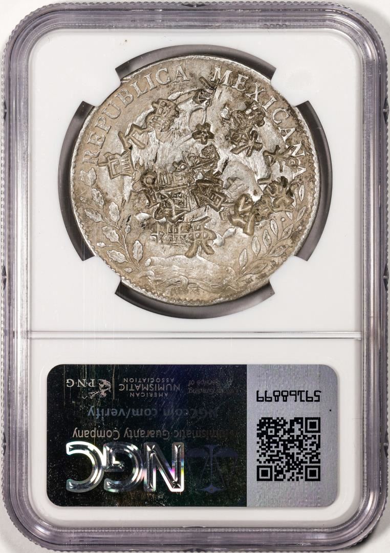 One 1887AS ML Mexico 8 Reales Silver Coin NGC Chopmarked. NGC Certified.