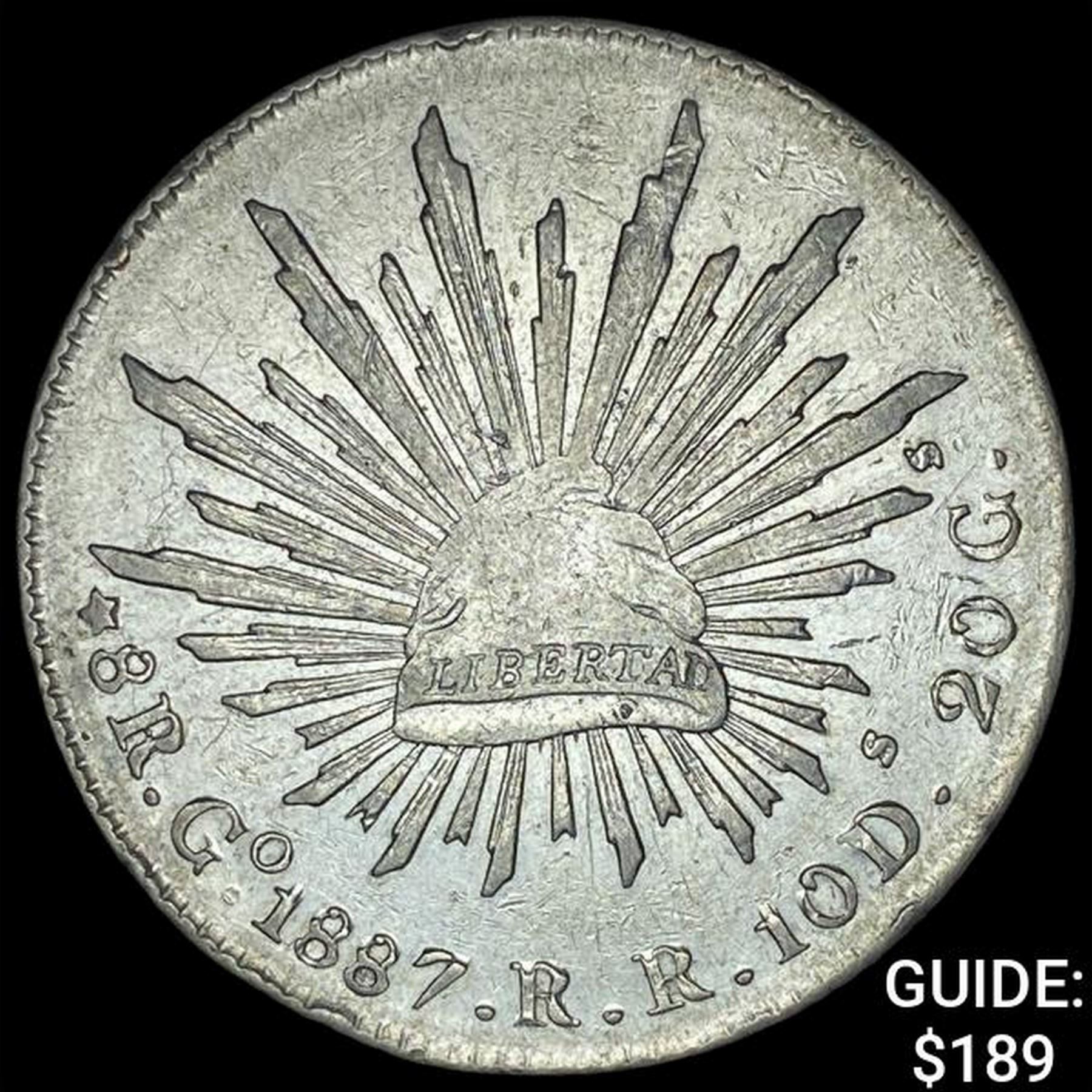 1887Go RR Mexico Silver 8 Reales Cap & Ray CLOSELY UNCIRCULATED