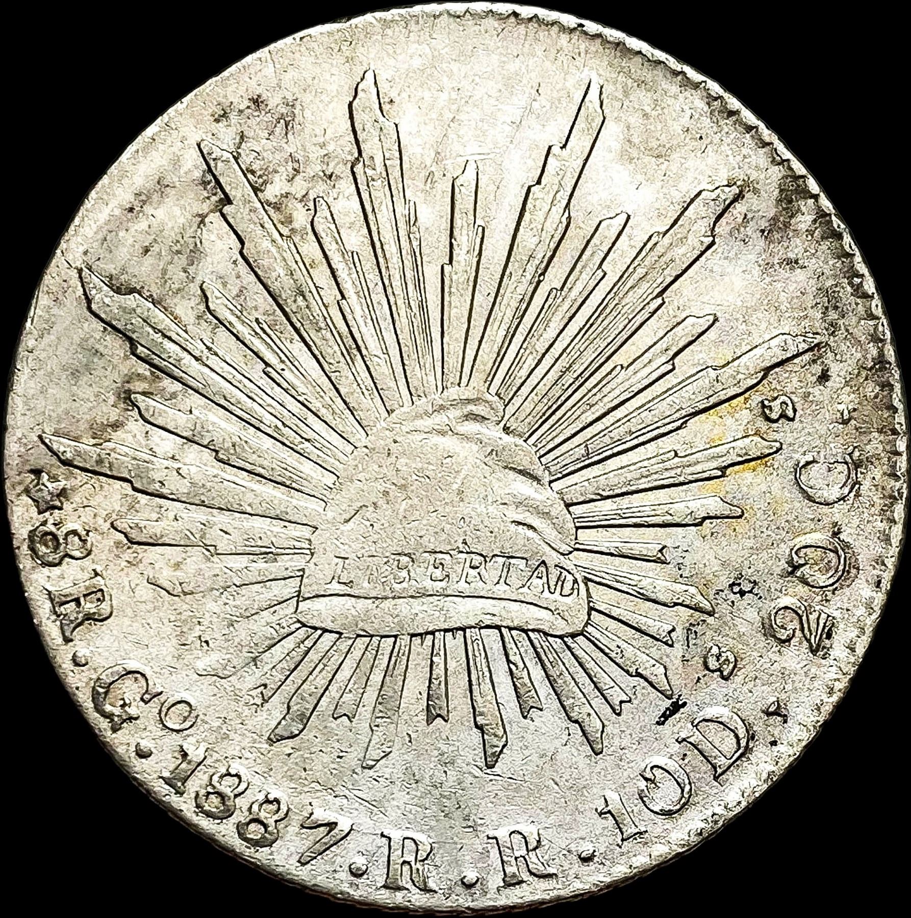 1887Go RR Mexico Silver 8 Reales Cap and Rays CLOSELY UNCIRCULATED