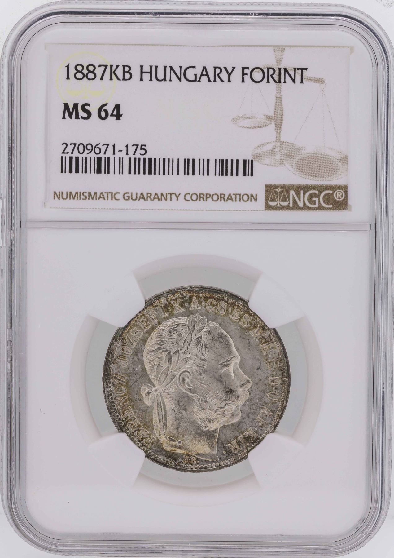 One 1887KB Hungary Forint Coin NGC MS64.