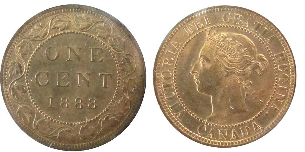 1888 1¢ ICCS MS65RD. 95% red attractive subdued eye appeal.