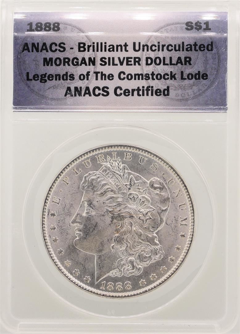 One 1888 $1 Morgan Silver Dollar Coin ANACS Brilliant Uncirculated. ANACS Certified.