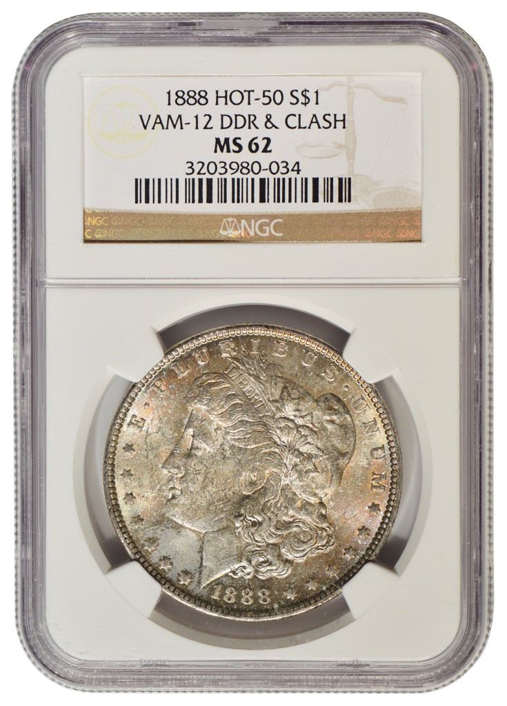 One 1888 Hot 50 $1 Morgan Silver Dollar Coin NGC MS62 Vam 12.