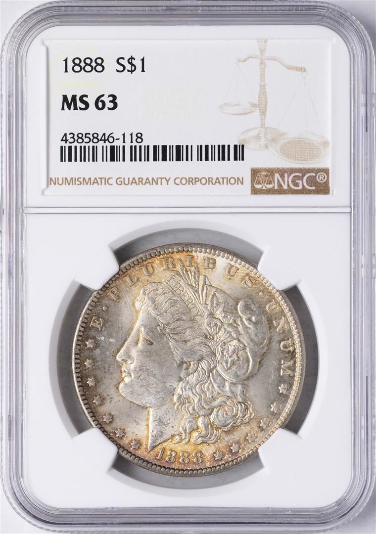 One 1888 $1 Morgan Silver Dollar Coin NGC MS63. NGC Certified.