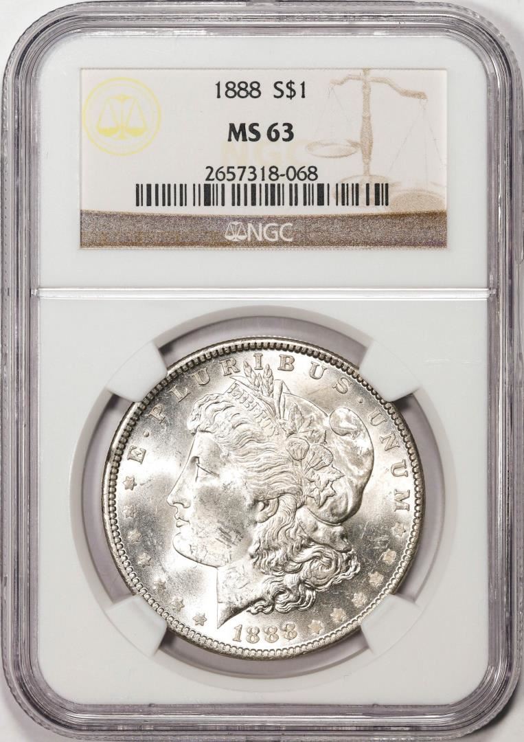 One 1888 $1 Morgan Silver Dollar Coin NGC MS63. NGC Certified.