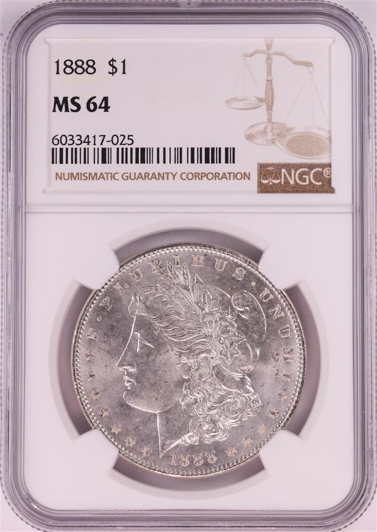One 1888 $1 Morgan Silver Dollar Coin NGC MS64.