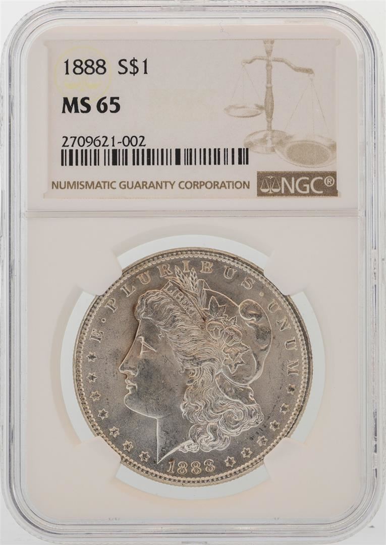 One 1888 $1 Morgan Silver Dollar Coin NGC MS65. NGC Certified.