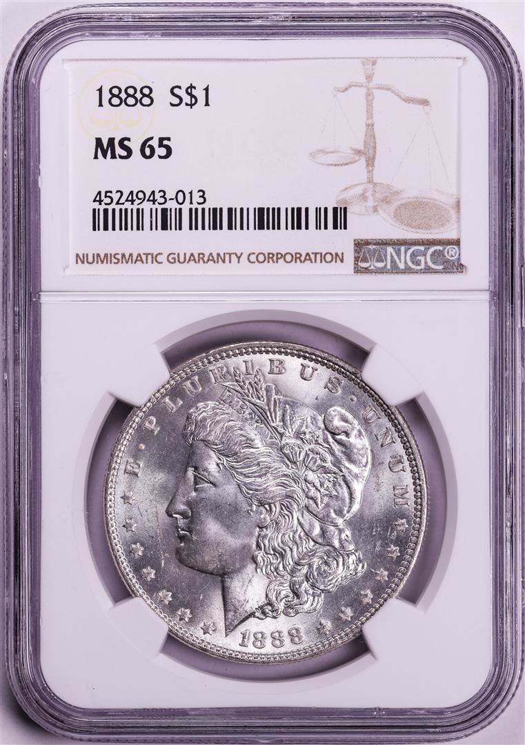 One 1888 $1 Morgan Silver Dollar Coin NGC MS65. NGC Certified.