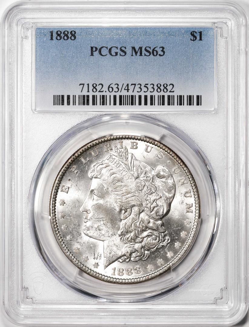 One 1888 $1 Morgan Silver Dollar Coin PCGS MS63. PCGS Graded.