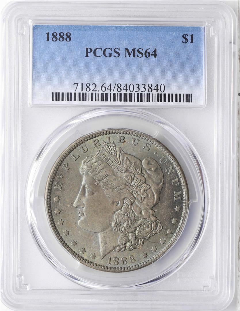 One 1888 $1 Morgan Silver Dollar Coin PCGS MS64 Nice Toning. PCGS Graded.
