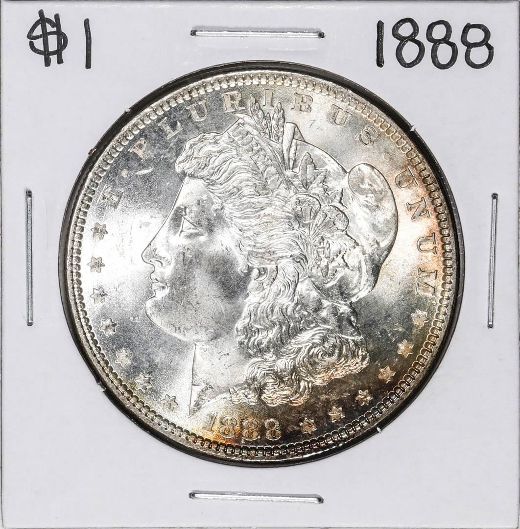 One 1888 $1 Morgan Silver Dollar Coin.