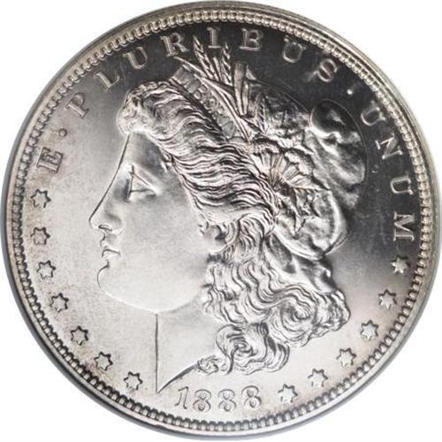 <B>1888 $1 PR64 NGC.</B></I> Crisply struck overall, if a tad weak on the hair detail just above Liberty's ear. Minor cloudiness on each side, and a few faint hairlines on the obverse further limit the technical grade of the piece. Bowers (2005) notes that this issue was poorly produced, actually prompting coin dealer Harlan P. Smith to file a formal complaint with the Mint. <BR><BR><B>Coin Engraver:</B> George T. Morgan<BR><BR><b>Shipping:</b> Coins & Currency (<a target="_blank" href="http://www.heritageauctions.com/common/shipping.php">view shipping information</a>)