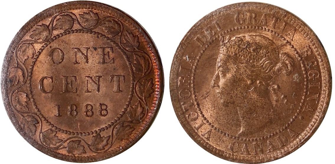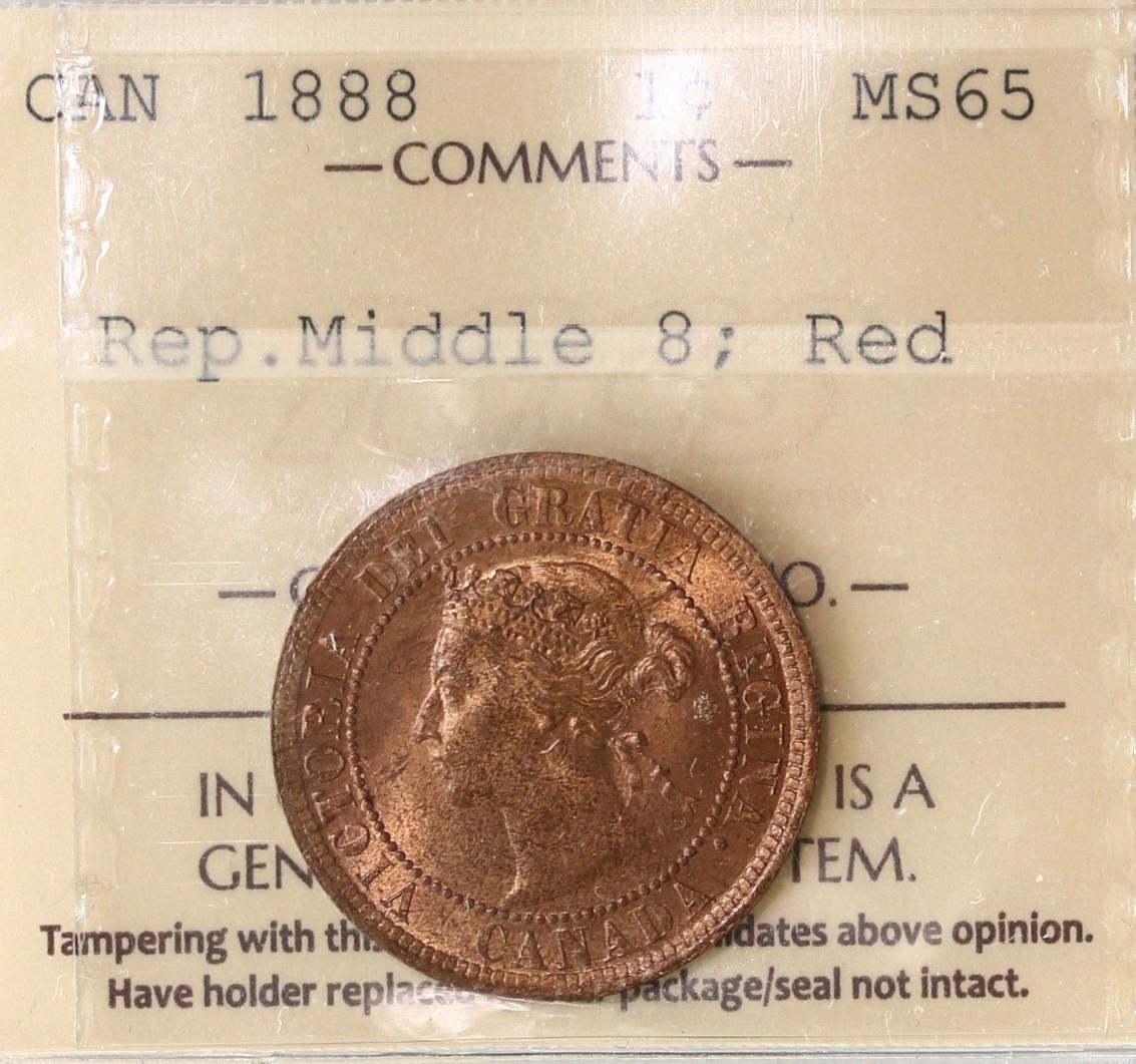 1888 1¢ "Rep. Middle 8" ICCS Gem Mint State-65. 90% red lustre. A superb and appealing example.