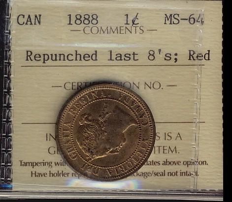 1888 1¢ Repunched last 8's ICCS MS64RD.