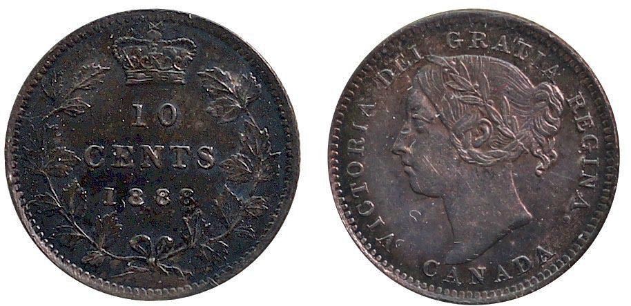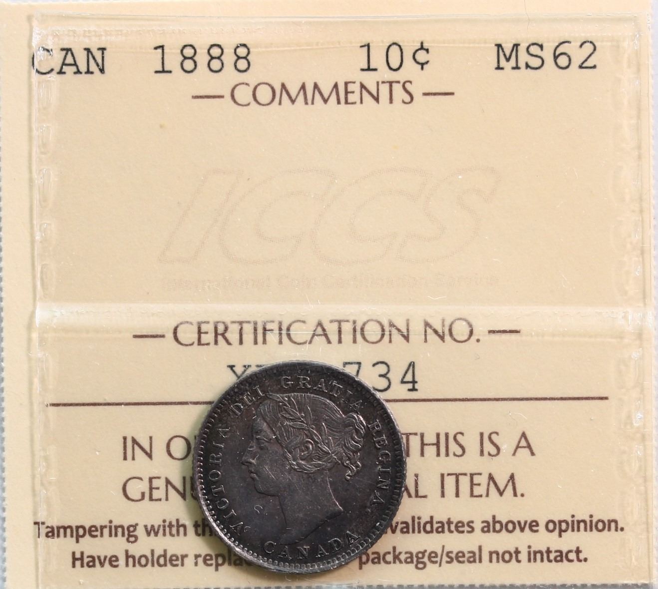 1888 10¢ ICCS Choice Mint State-62. Lustrous example.