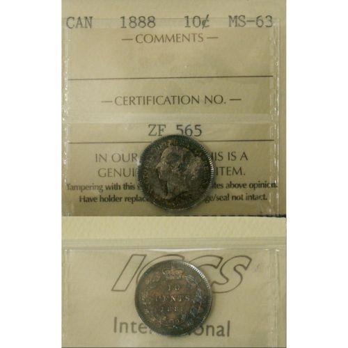 1888 10¢ ICCS MS63 attractive with dark brownish and bluish tone