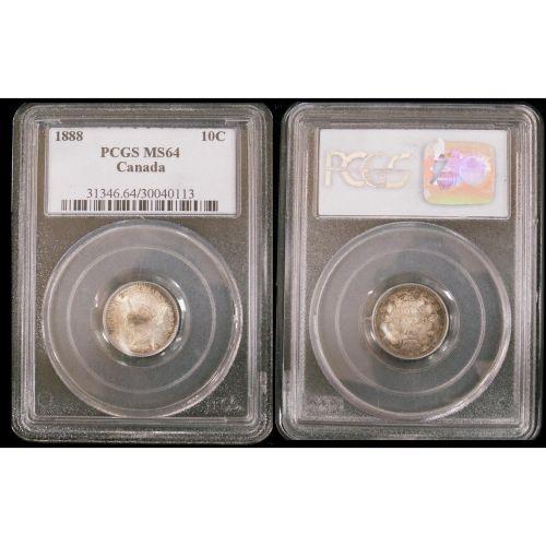 1888 10¢ PCGS MS64. A Gem Victorian issue with light brown rim toning on reverse.