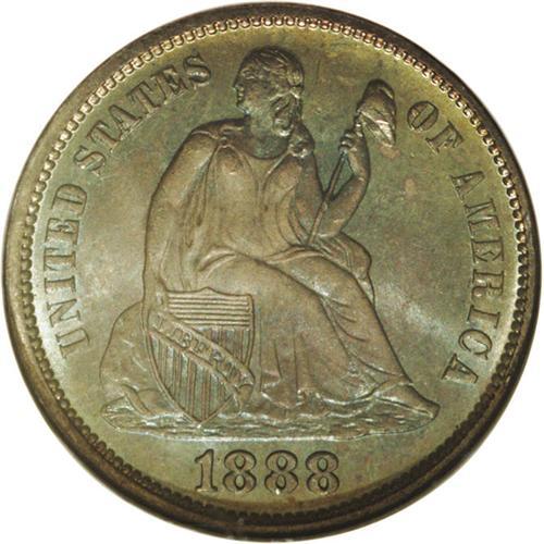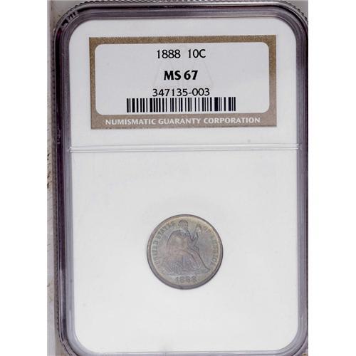 1888 10C MS67 NGC. The 1888 dime, with a mintage of 1888