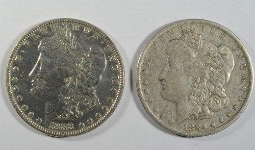 1888, 1884-O MORGAN DOLLAR BOTH XF, 1888 CLEANED