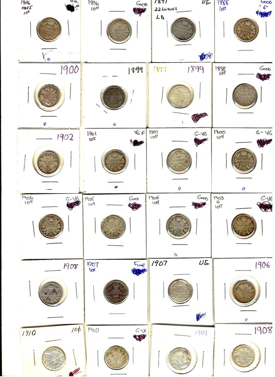 8. The estimates listed are taken from the Canadian Coin News, Charlton catalogues, Canadian Dealers News letter and retail prices, e-bay sales, Cornwell report and/or the actual market selling/ asking prices. Key dates and Highest grade material will