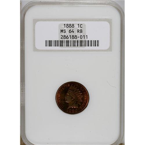 <B>1888 1C MS64 Red and Brown NGC.</B></I> NGC Census: (131/69). PCGS Population (121/11). Mintage: 37,494,416. Numismedia Wsl. Price for NGC/PCGS coin in MS64: $244. (#2167)<BR><BR><b>Shipping:</b> Coins & Currency (<a target="_blank" href="http://www.heritageauctions.com/common/shipping.php">view shipping information</a>)