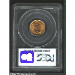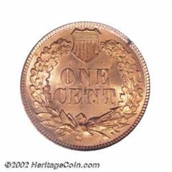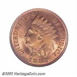 1888 1C MS66 Red PCGS. An immensely attractive Indian Cent, the surfaces are bright with even orange-red color over both sides with no signs of mellowing or browning anywhere. The mint luster is thickly layered on both obverse and reverse, giving this coin an undeniable attractiveness. Population: 12 in 66, 1 finer (9/02). Important notice: We expect to be auctioning lots at the rate of 200-250 per hour. Sometimes eBay Premier live bid software cannot keep up with that pace, so we strongly recommend that you place a realistic proxy bid now as insurance to avoid disappointment. Also please note that all Heritage/CAA lots purchased through eBay Premier carry a 20% Buyer's Premium. Please make sure you read the Terms and Conditions.