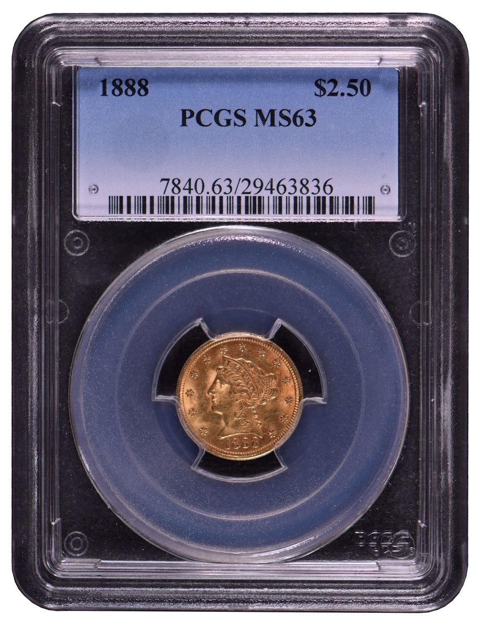 One 1888 $2 1/2 Liberty Head Quarter Eagle Gold Coin PCGS MS63.